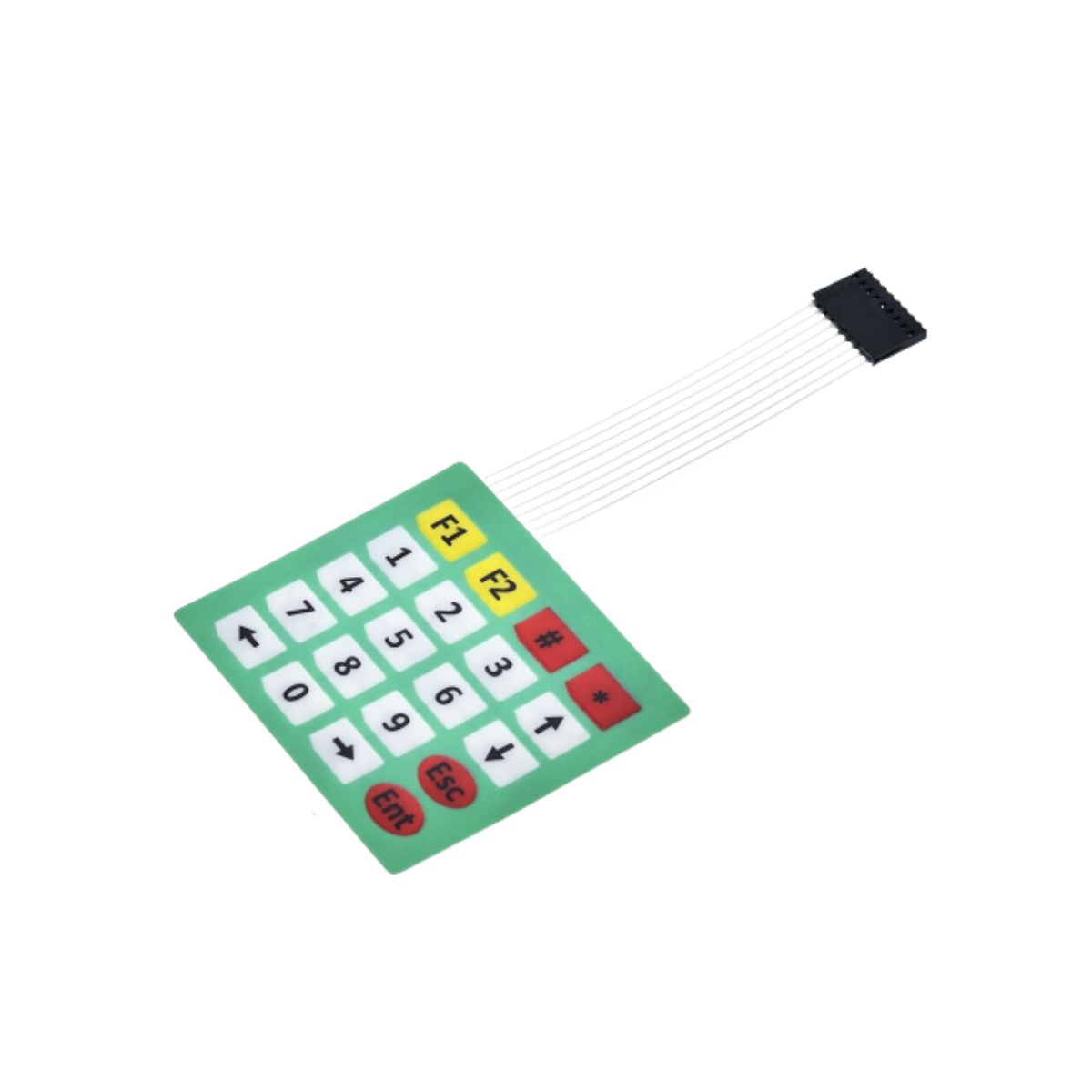 Possui as teclas: 0-9, F1, F2, *, #, ESC, ENT, seta para direita e seta para a esquerda